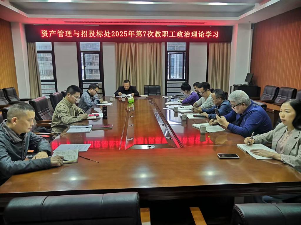 本网讯:2025年9月23日下午4:50,资产管理与招投标处全体教职员工在逸夫楼A405开展第七次教职工政治理论学习。活动分为重要讲话精神学习和政策法规制度学习两大板块,具体包括《习近平谈治国理政》第五卷第五章《一体推进教育科技人才事业发展》、《中国共产党机构编制工作条例》、《巡视巡察整改不力责任追究办法》(湖南省委巡视工作领导小组印发)、《中华人民共和国网络安全法》及《湖南文理学院纵向科研经费管理办法(修订稿)》(校政字〔2025〕29号)。