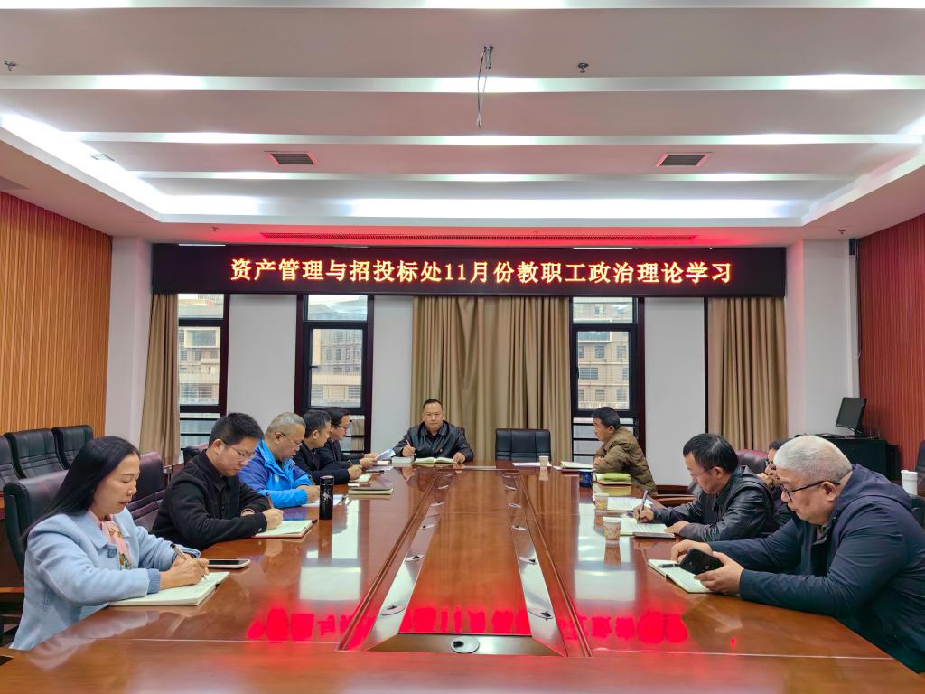 本网讯:2025年11月25日下午5:00,资产管理与招投标处全体教职员工在逸夫楼A405开展第九次教职工政治理论学习。活动集中学习《中国共产党第二十届中央委员会第四次全体会议公报》、《湖南省高校教师违反职业道德行为处理实施办法》(湘教发〔2022〕12号)、《湖南文理学院消防安全管理规定》等3项文件(校政字〔2025〕42号)及《湖南文理学院经费报销管理办法》(校政字〔2025〕45号)。